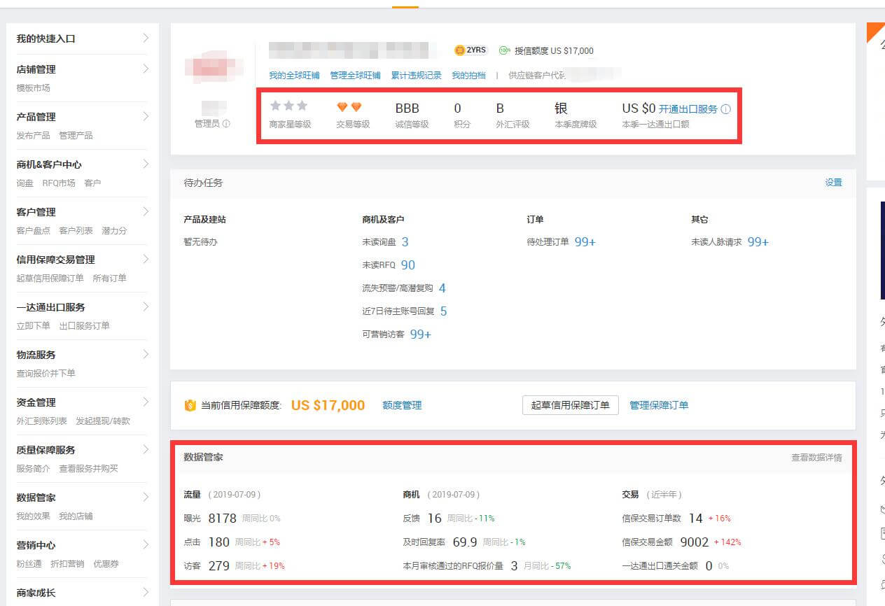 后台没区别,都一样,除了点击,询盘多一些,商家等级0星,信保订单半年14单。其它的好像没区别和大家都一样。