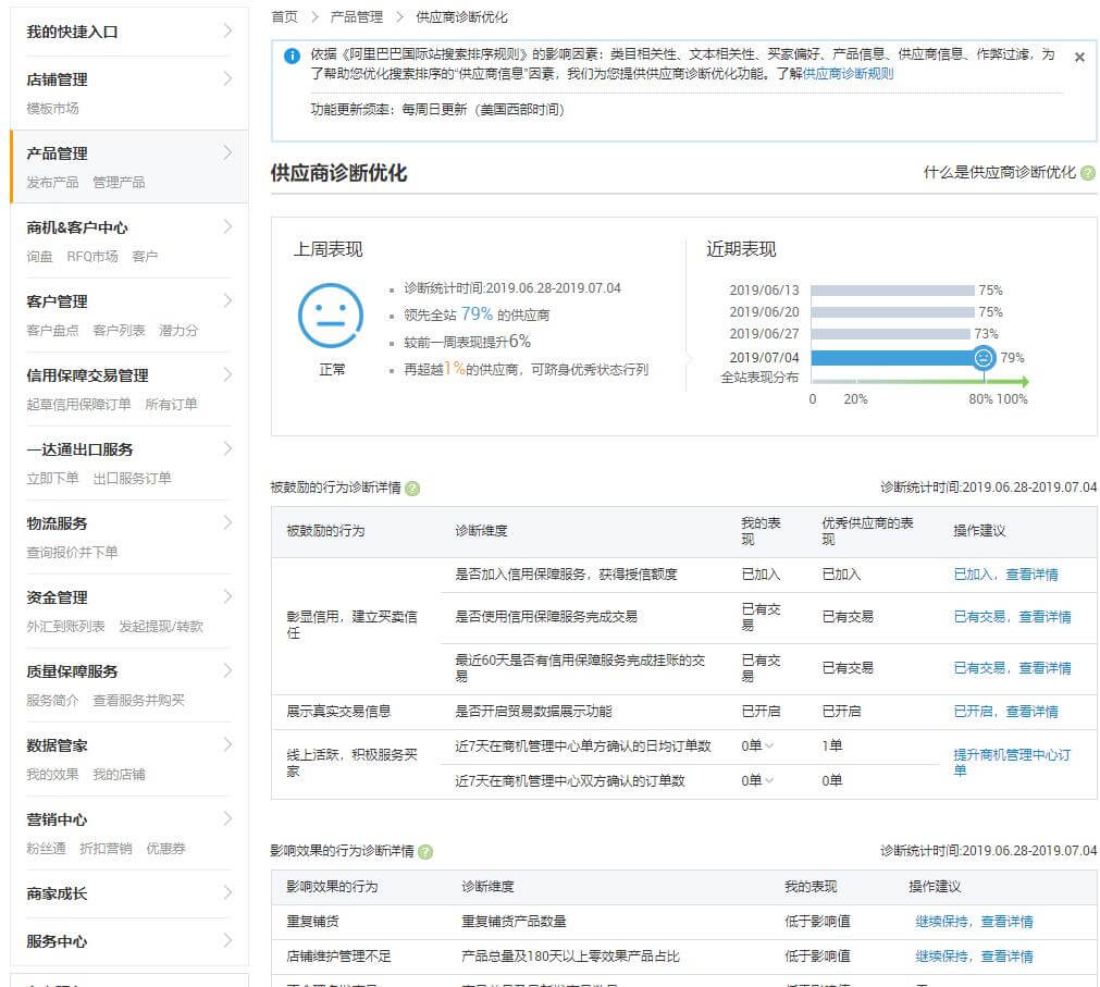 供应商诊断也是一样,没什么差别,各项指标都差不多。表现分数也没达到90或100分。