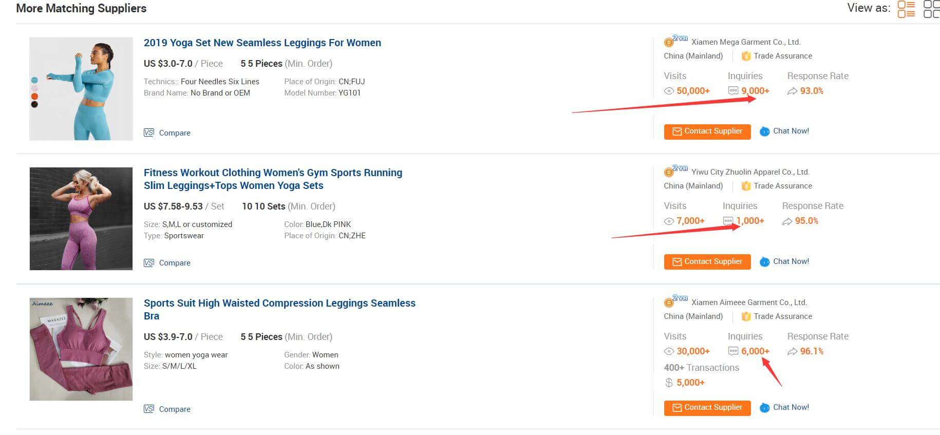 查看Inquiries 统计最大的店铺,1000+、2000+、3000+、9000+,一直往下翻页找。