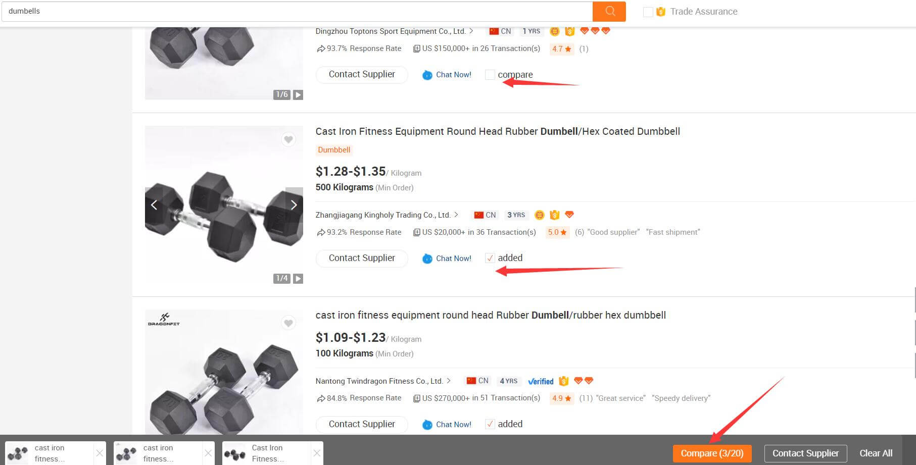1、搜索关键词,找到自然排名的产品,点击产品compare