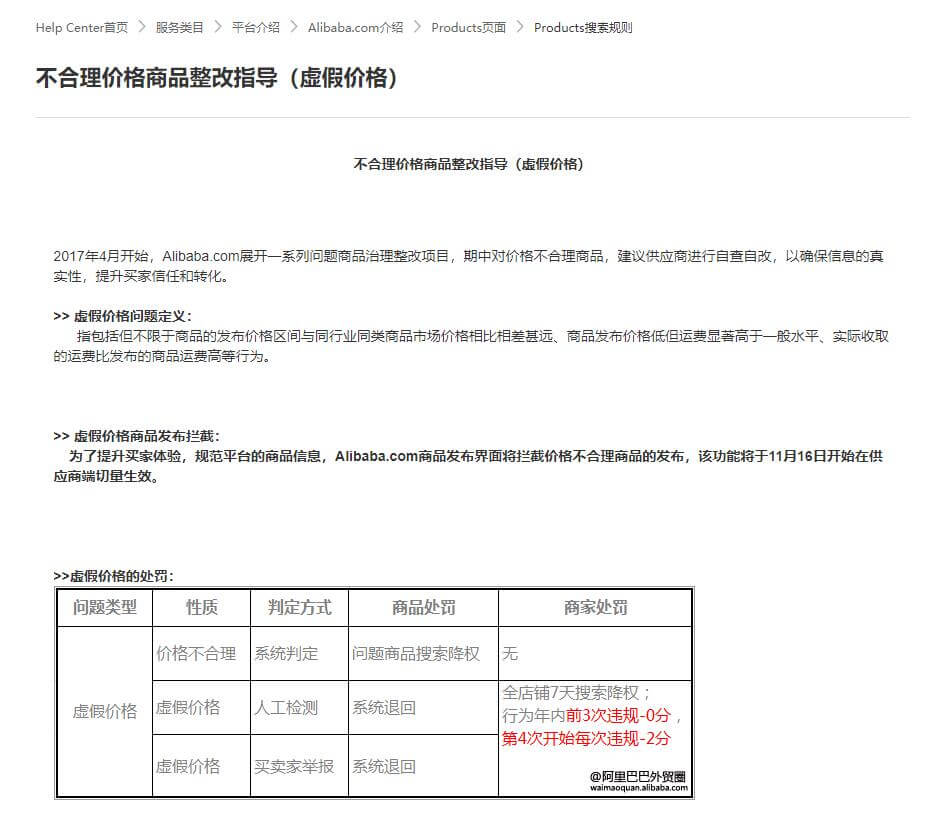 2017年国际站虽然出了相对应的规则和处罚:不合理价格商品整改指导(虚假价格)