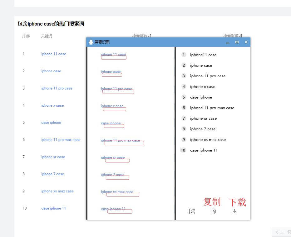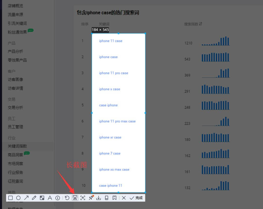 先按快捷键QQ截图,然后选择长截图,滚动鼠标下滑最到后一个关键词,然后点击编辑,在选择屏幕识图。
