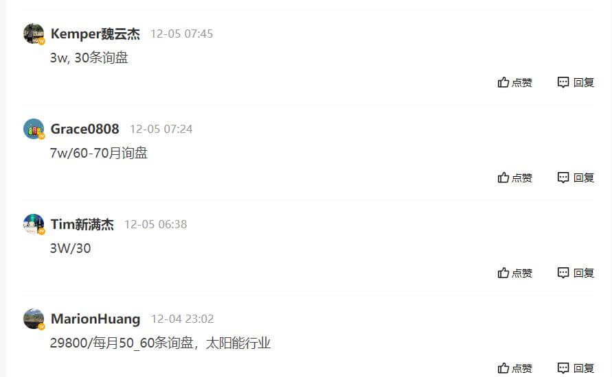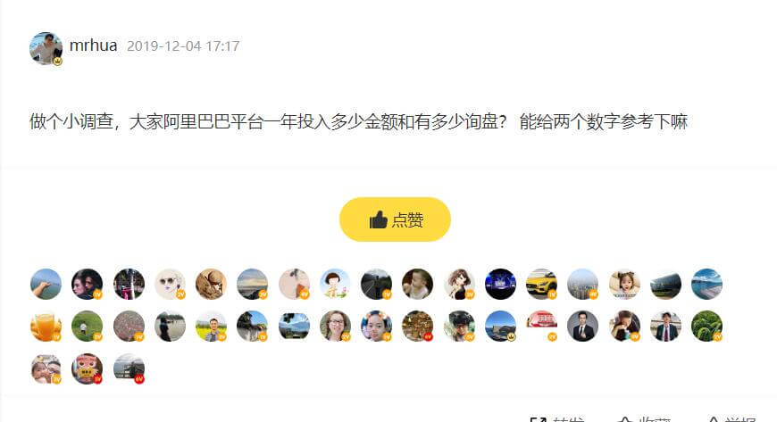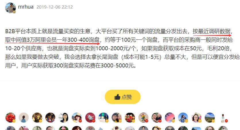 最近瞎逛米课,看到有人在调查阿里巴巴国际站平台询盘情况,也做了分析,大部分投3万阿里会员,一年300-400询盘,我看完觉得好惨,也在公众号进行了调查,发现确实有点惨。当然这也要区分行业,有些行业确实达不到这个数量。是行业问题,还是操作问题,这都要分析。