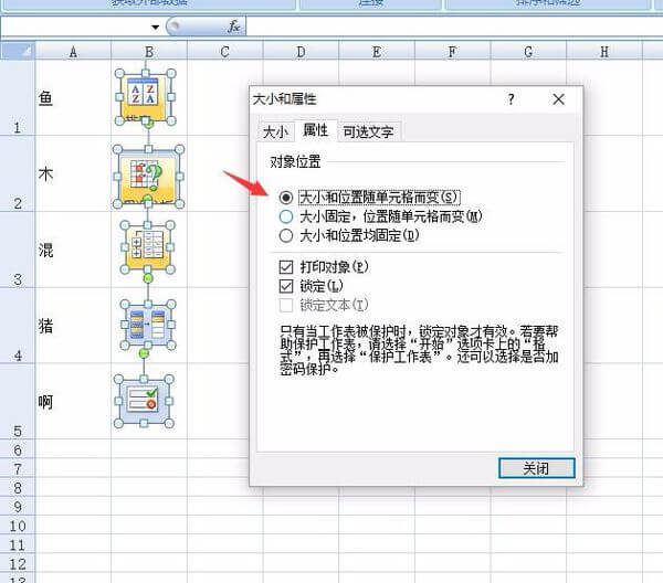 方法如下: 1.先选择图片,点击右键,“大小和属性”,选择“大小和位置随单元格而变”(如果图片数量太多,使用CTRL+G——对象——找到所有的图片——右击——设计对象格式——属性——大小固定,位置随单元格而变化。)