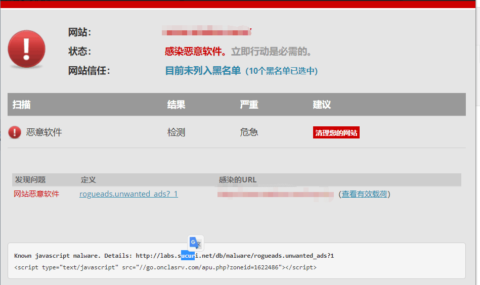 2. 通过工具进行检测:https://sitecheck.sucuri.net/ 查找垃圾代码所在位置或页面,并修改。
