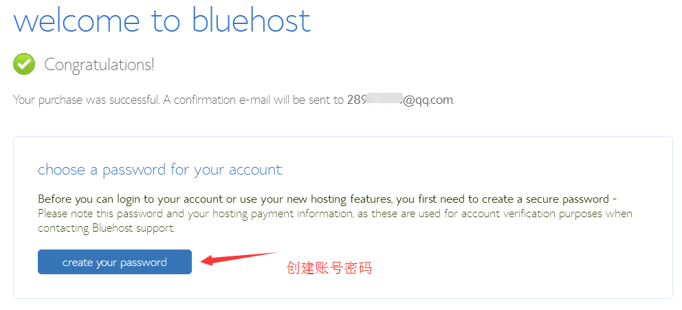 到这一步,你已经成功购买并设置了 Bluehost 账号和密码。