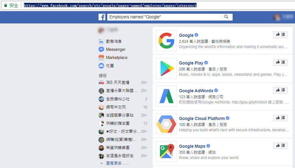 Google谷歌公司主页:https://www.facebook.com/search/str/google/pages-named/employer/pages/intersect