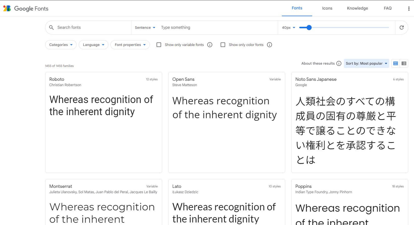 以上十款字体比较受欢迎,更多字体可以上谷歌字体查看。