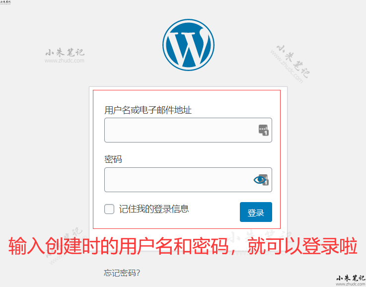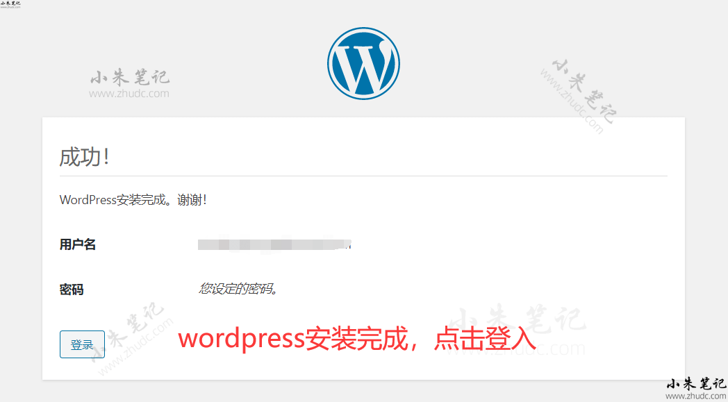 6、点击登录网站后台,或者浏览器输入登录地址:www.你的域名.com/wp-admin