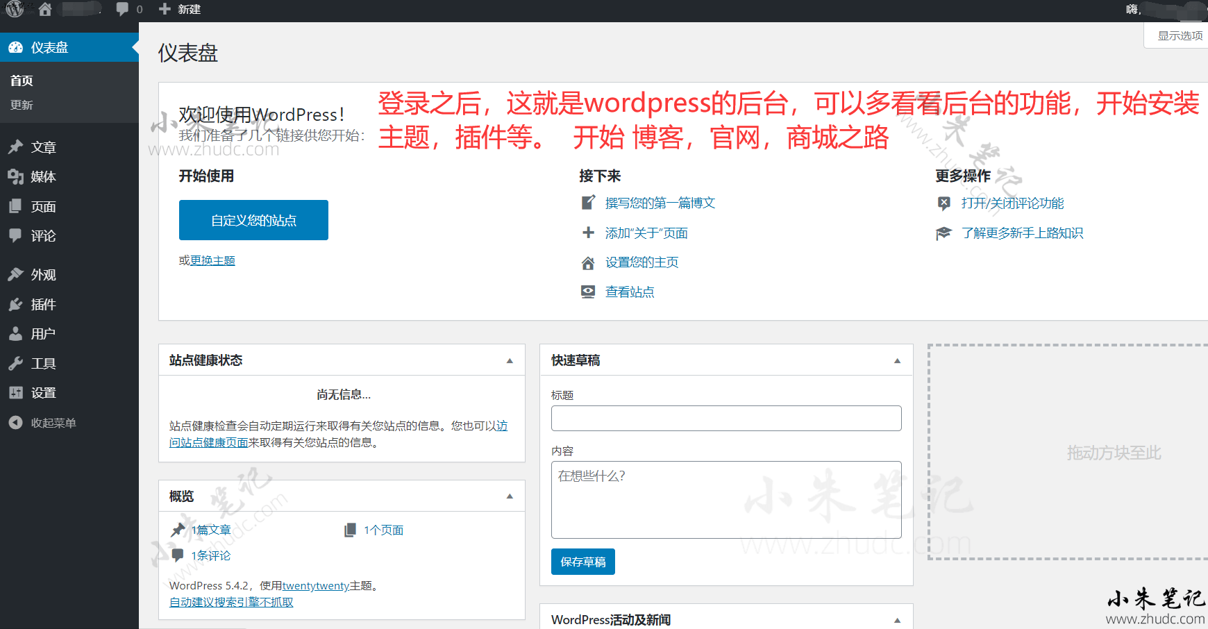 网站创建,上传wordprss文件,安装wordprss,登录网站后台,算是完成了,开始博客,官网,商城之路。