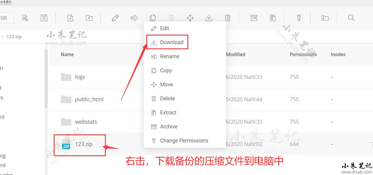 4、public_html打包完成,右击下载到电脑中。