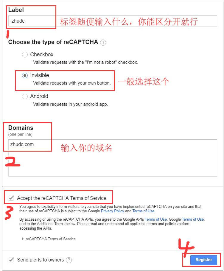 2、首先申请谷歌密钥:https://www.google.com/recaptcha。(你要能科学上谷歌