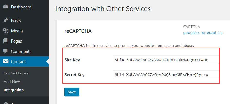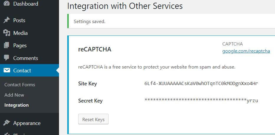 1、Contact Form 7选择integration进行设置。一样要密钥验证。