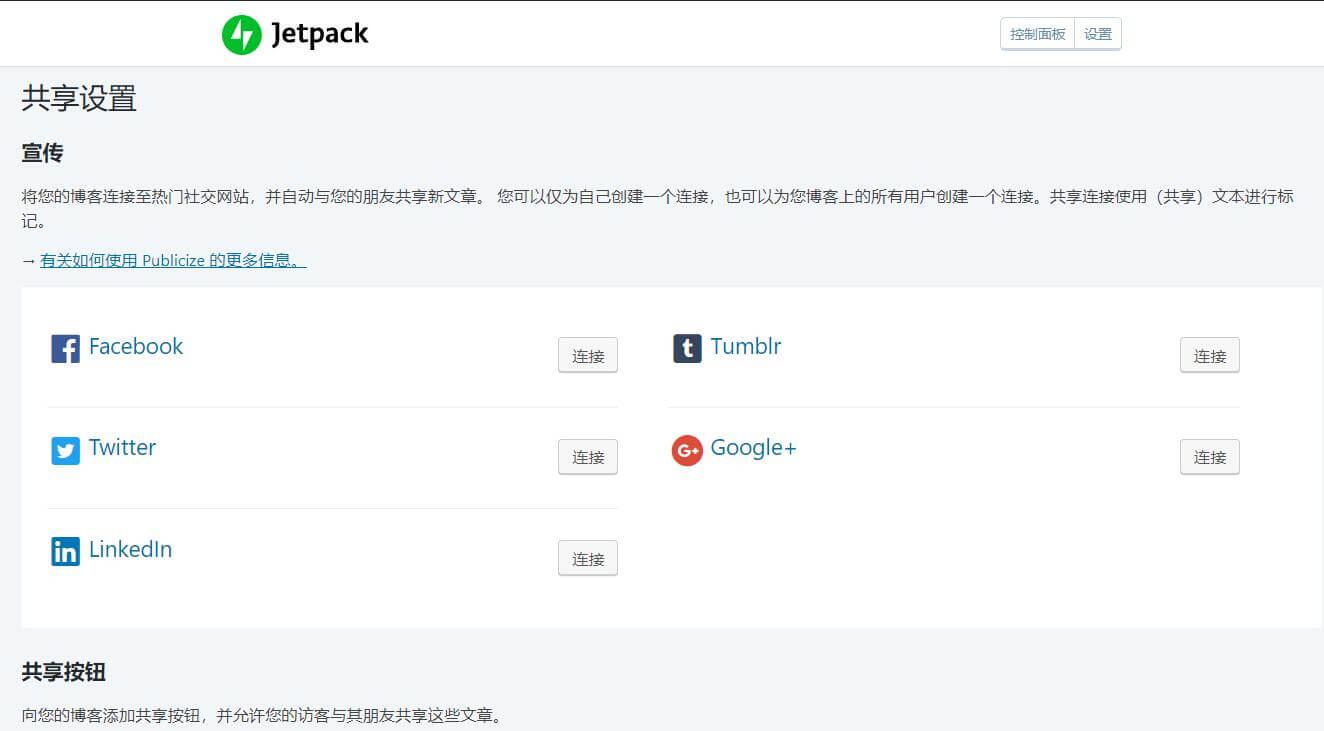 • 在您网站的仪表板中转到Jetpack  → 设置  → 共享