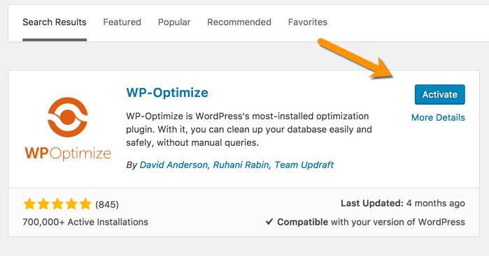 在这种情况下,例如搜索WP-Optimize ,得到了以下结果:
