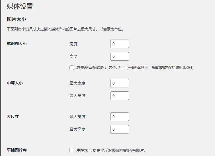 三、WordPress后台媒体禁止缩略图自动生成设置。
