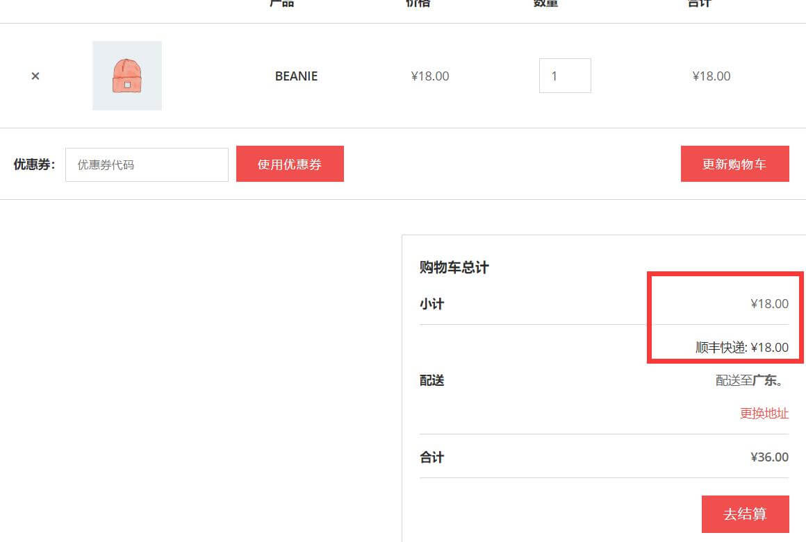 - 如果你没有设置其他区域,那么所有的地区配送费用为统一的